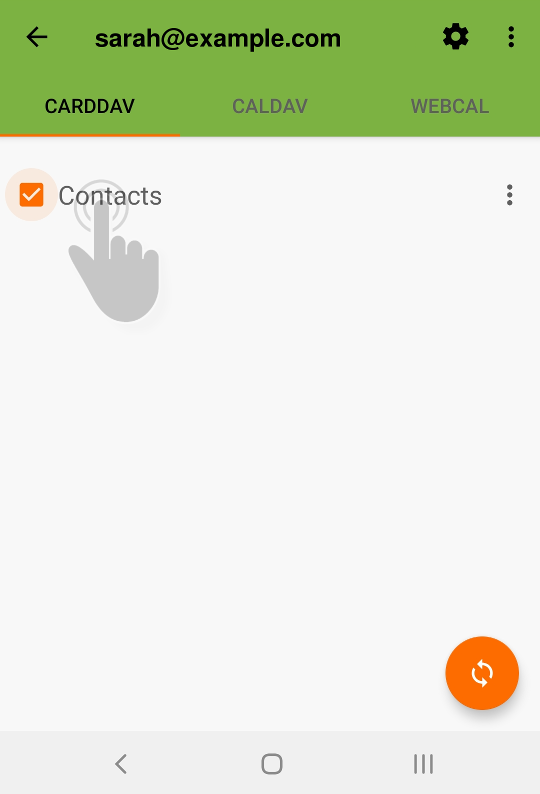 Tap the CARDDAV tab, and select the address book(s) you wish to sync.