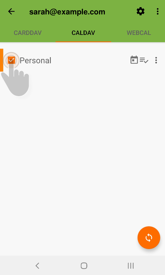 Tap the CALDAV tab, and select the calendar(s) you wish to sync.