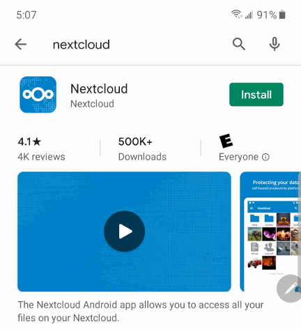 Go to the Google Play Store, and install the Nextcloud app for Android.