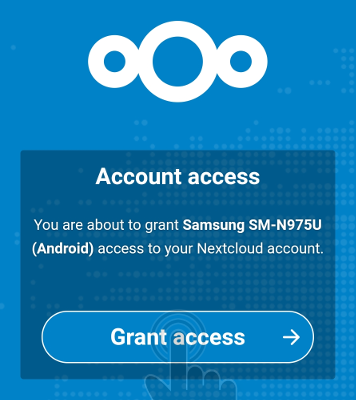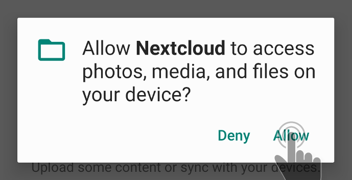 The Nextcloud app requires access to file storage on your Android device. Click Allow to continue.