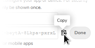 Copy the app password and store it somewhere safe (e.g. a password manager), along with your Efficient Documents account username.