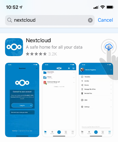 Go to the App Store, and install the Nextcloud app for iOS.