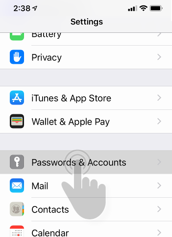 Go to the “Settings” app and select Passwords & Accounts.