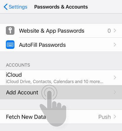 Under ACCOUNTS, tap Add Account.