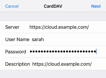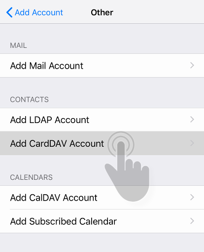 Under CONTACTS, tap Add CardDAV Account.