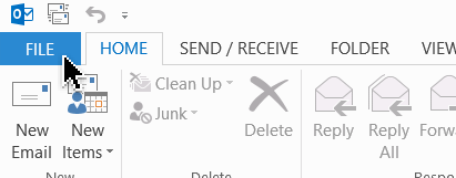 Select the FILE tab (top left of Outlook’s main window).