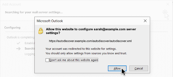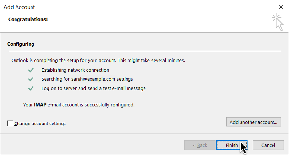 Outlook will automatically configure your incoming and outgoing email server settings (this step may take a moment).