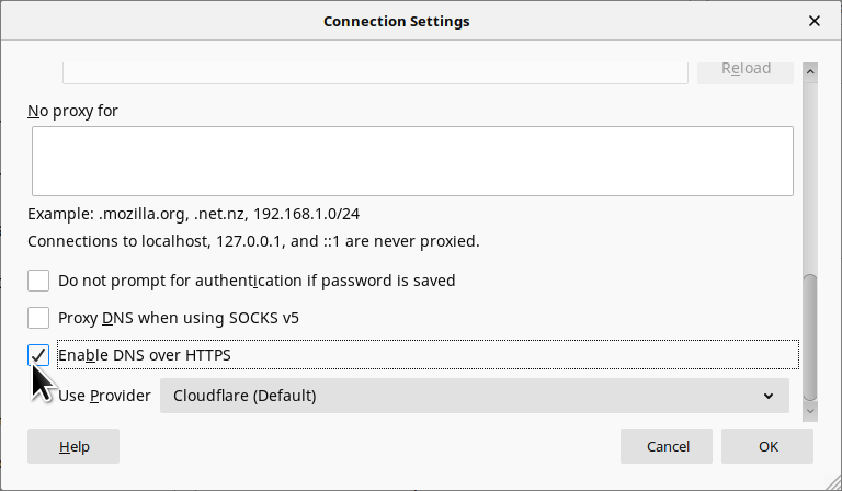 Scroll down and check Enable DNS over HTTPS.
