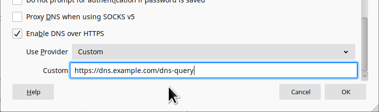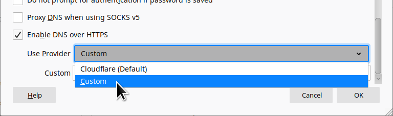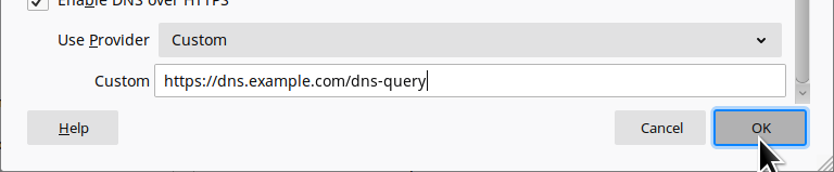 Enter the following URL in the Custom field: https://dns.efficientdocuments.com/dns-query.